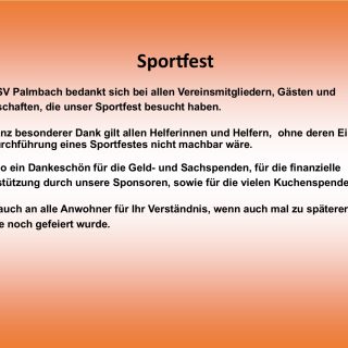 Der TSV Palmbach bedankt sich bei allen Vereinsmitgliedern, Gästen und Mannschaften, die unser Sportfest am 27....