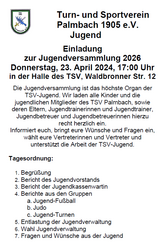 Der Beitrag Einladung zur Jugendversammlung 2026 erschien zuerst auf TSV Palmbach 1905 e. V..